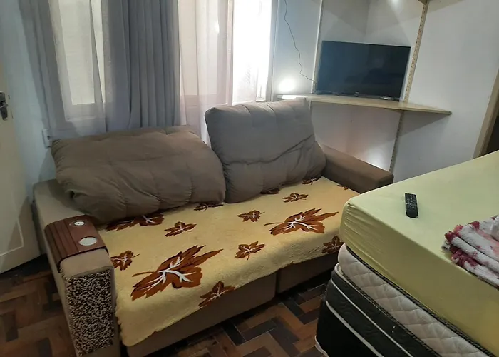 The 1-room Apartamento Completo Temporada Privativo No Centro Porto Alegre lies 1.8 miles from Moinhos Shopping and just 5 minutes' stroll from Mercado subway station.